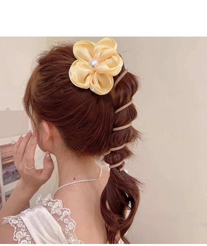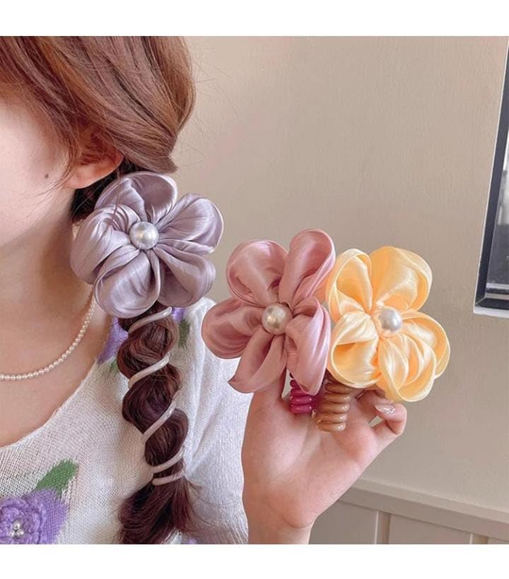 - تصميم أنيق: زهرة ساتان جميلة مزينة بلؤلؤة مركزية، تضيف لمسة راقية لتسريحات الشعر المختلفة