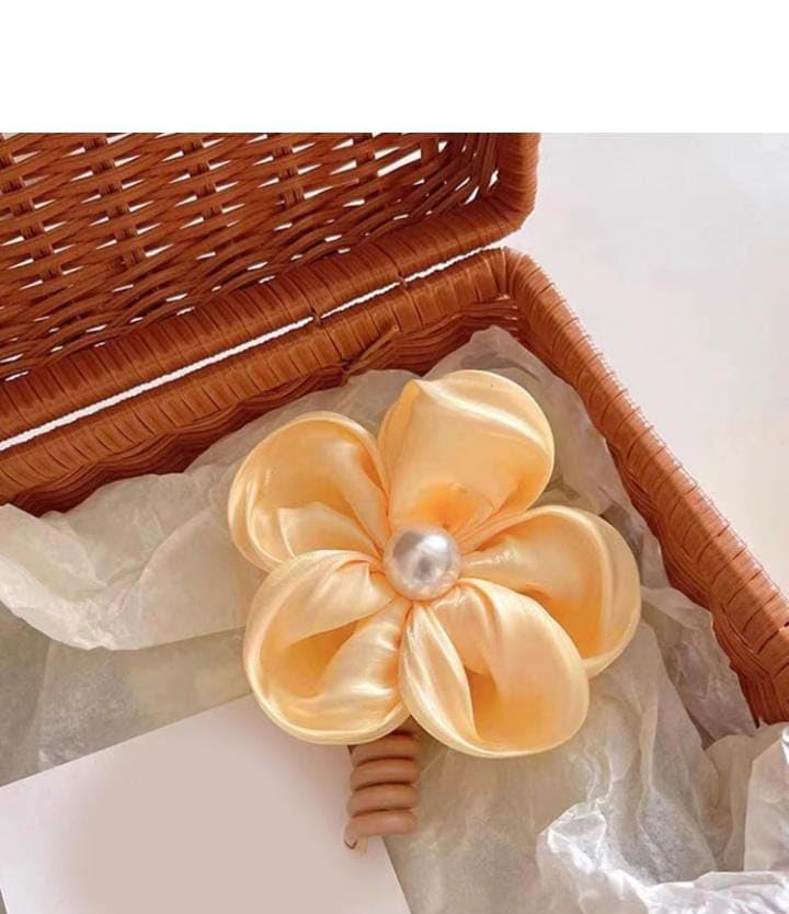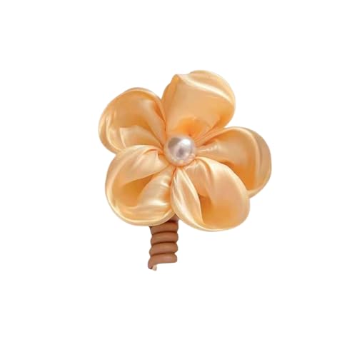Generic - دبوس شعر زهرة ساتان مع لؤلؤة، جميلة، مشبك شعر نسائي للتسريحات الأنيقة (اصفر)