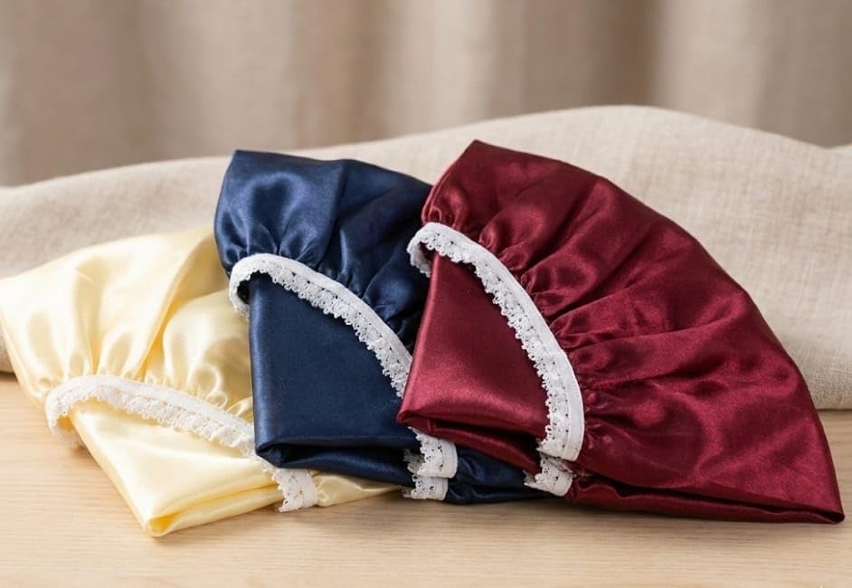 Generic - بونيه حمام للشعر من الستان بحواف دانتيل، جودة عالية، الوان متعددة