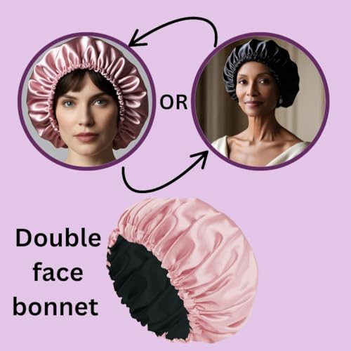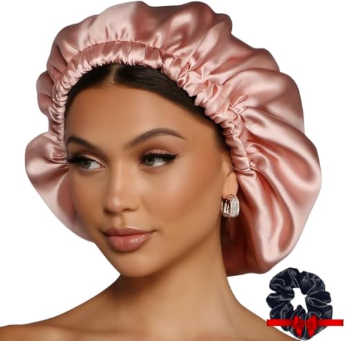 Generic - بونيه حريري من الساتان للنوم - قبعة صغيرة فضفاضة من الساتان للشعر الطبيعي والمجعد للنساء، تأتي مع ربطة شعر كهدية، مقاس واحد