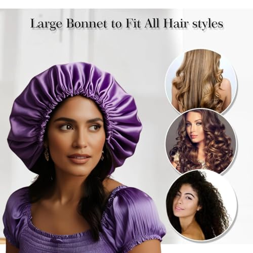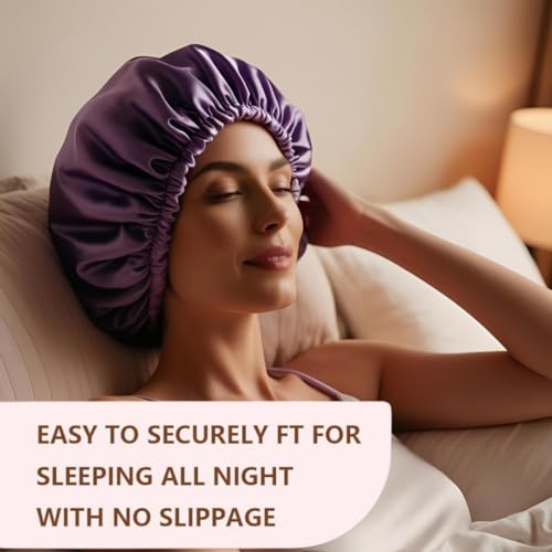 Generic - قبعة صغيرة للنوم من الساتان، باللون البنفسجي، مصنوعة من الساتان للنساء، بتصميم سلوتشي بيني مزدوج الوجه