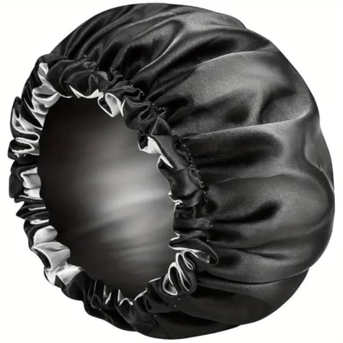 Generic - قبعة نوم من الساتان، أسود، حافة مطاطية، حماية الشعر، قابلة لإعادة الاستخدام