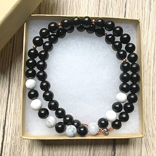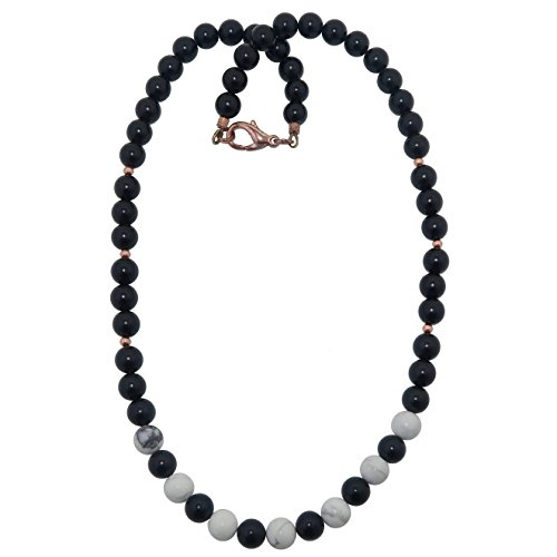 Satin Crystals - SatinCrystals Howlite Necklace Boutique Beaded Genuine White Gemstone Round Velvety Lightweight Black Jet B04