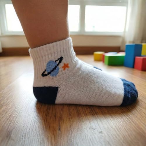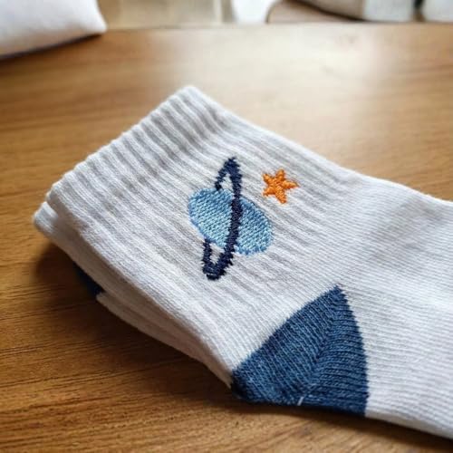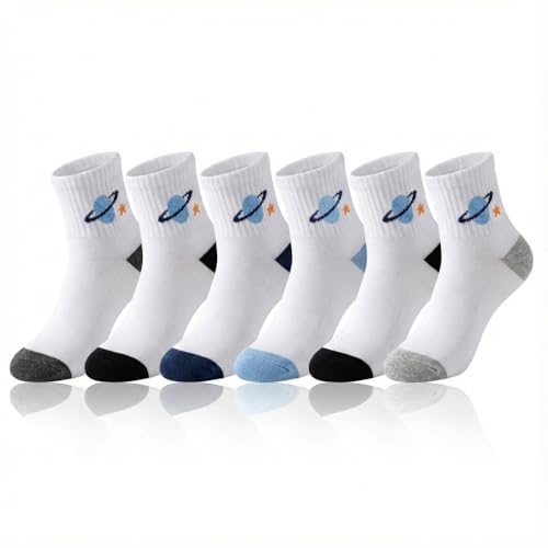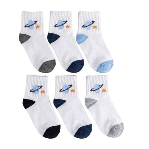 Generic - جوارب أطفال قطنية بتصميم كوكب زحل والنجوم، 6 أزواج، ألوان متعددة، قصيرة ومريحة