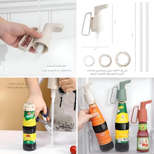 - موزع مضخة صلصة لزجاجات الكاتشب ومربى زيت المحار، فوهة ضغط مانعة للتسرب للمطابخ والمطاعم العائلية، موزع عصارة زجاجات مع أنابيب غمس طويلة