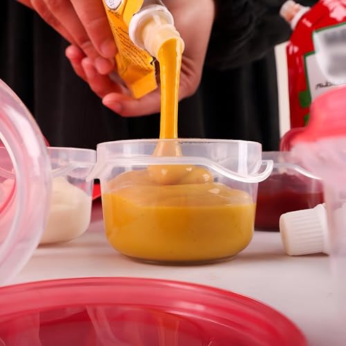 - تضمن الأغطية الضيقة ذات الحواف الحمراء النضارة وتمنع التسربات أو الانسكابات - مثالية لحمل الصلصات أو تخزين المكونات المقسمة مسبقًا بأمان ونظافة.