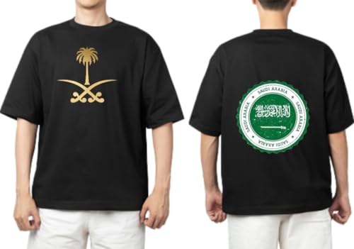 Generic - تي شيرت بتصاميم المملكة العربية السعودية، أسود، اكس لارج XL