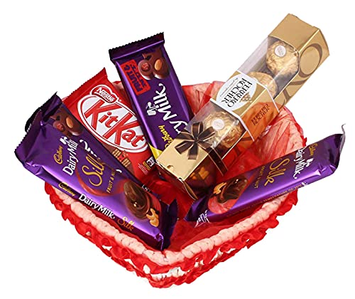 - سلة منتجات ديكور مع 6 قطع شوكولاتة.