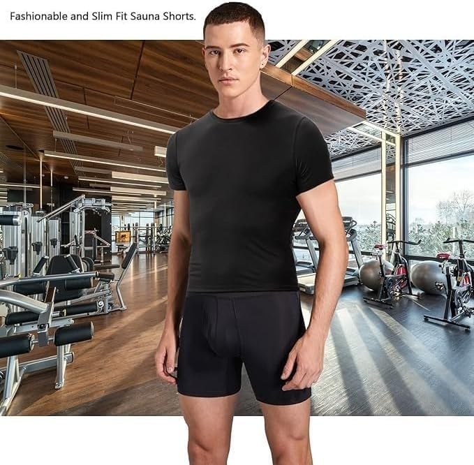 Generic - شورت ساونا للرجال بخصر مرتفع للتخسيس، سريع الجفاف، شورت ضغط خفيف الوزن للتمارين الرياضية والجري