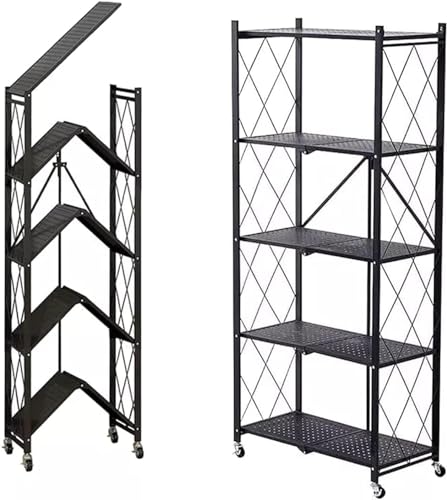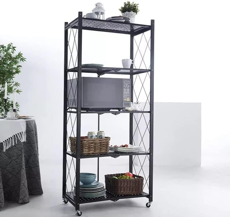 Sausiry - سوسيري رف تخزين قابل للطي من 5 طبقات مع عجلات 70 × 34 × 163 سم (اسود)