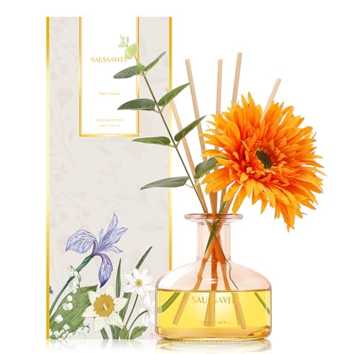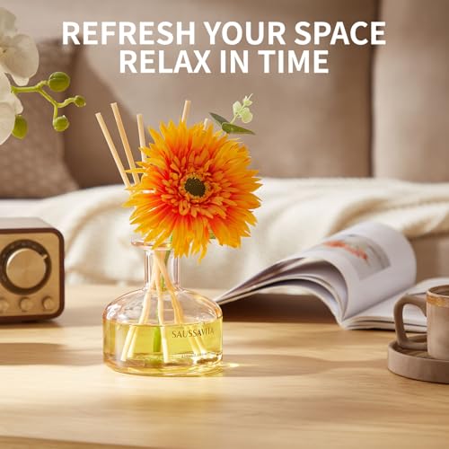 Saussavita - مجموعة موزع روائح القصب من سوسافيتا، 7.8 اونصة/ 210 مل برائحة الجريب فروت والبرغموت مع 7 اعواد، عطر منزلي يدوم طويلا لمدة 120 يوم، مثالي للحمام وديكور الرفوف ومعطرات الجو