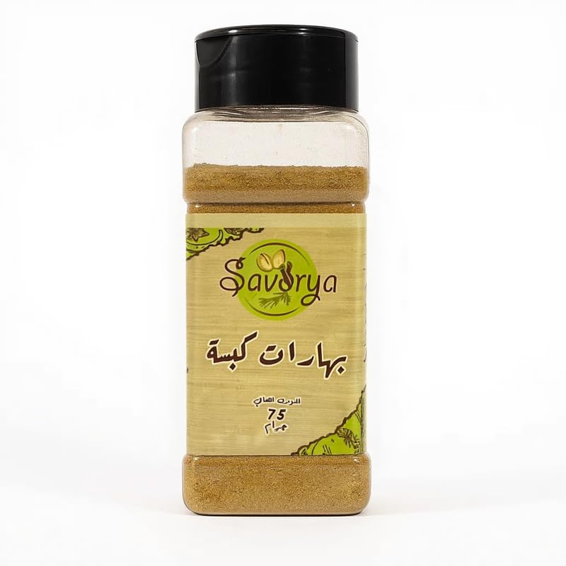 Savorya - خلطة بهارات كبسة، 75 جم، خلطة عربية تقليدية لأطباق الأرز واللحوم، نكهة دافئة وعطرية، مثالية للكبسة بالفراخ أو اللحم الضاني، خلطة من مكونات طبيعية، تأتي في برطمان قابل لإعادة الإغلاق من سافوريا