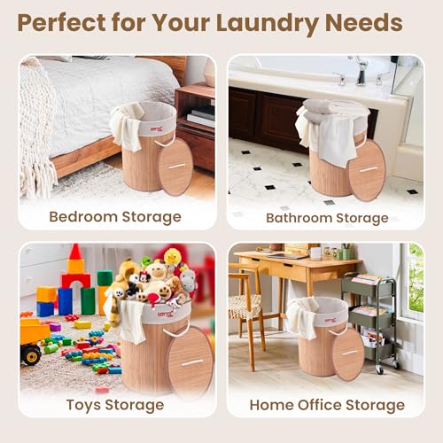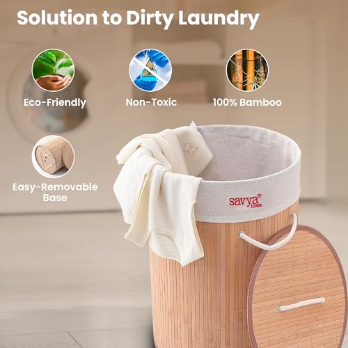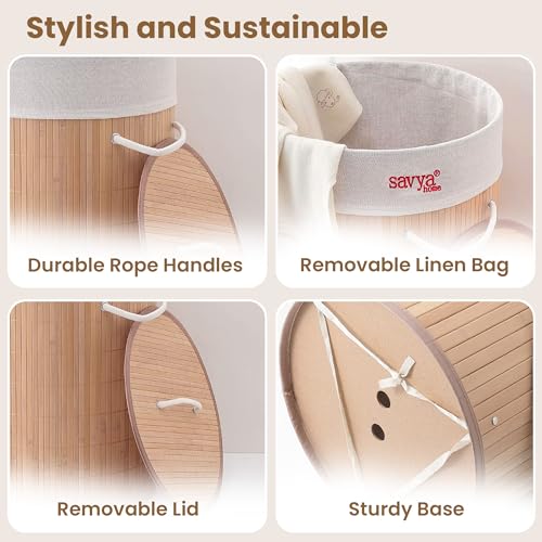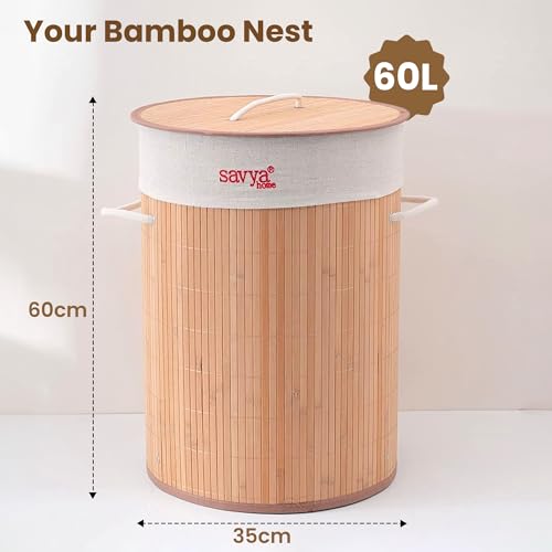 SAVYA HOME - سبت غسيل دائري من خشب البامبو مع غطاء، سلة غسيل للملابس، قابلة للطي ومتينة، منظم مثالي للملابس والألعاب من سافيا هوم - بيج