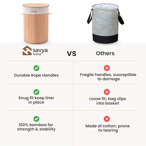 - سلة غسيل من سافيا هوم المصنوعة من البامبو مصنوعة من مواد عضوية ولها مظهر مبهج وجذاب. سلة تخزين الملابس مصنوعة من البامبو الطبيعي عالي الجودة والكتان الصديق للبيئة.