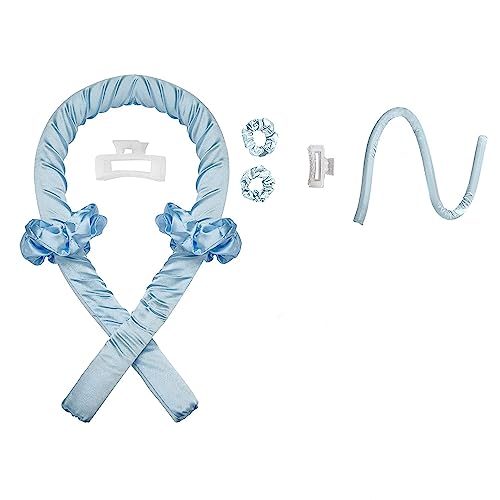 Sawanork - شريط رأس لتمويج الشعر بدون حرارة من للشعر الطويل ومتوسط الطول، بكرة تمويج شعر برباط حريري مع مشبك شعر من سوانورك، أزرق