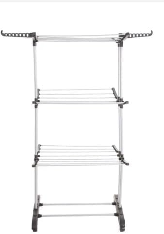 Generic - منشر (منشر ملابس معدن 3 أدوار قابل للطي مع عمودين اسود)