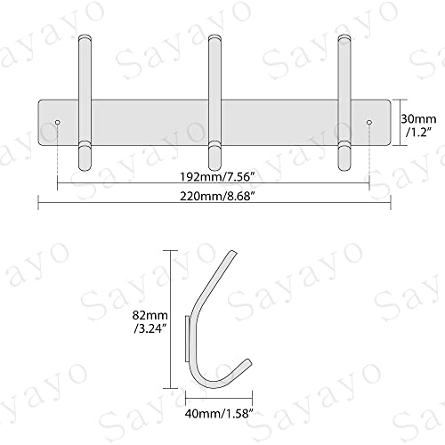 SAYAYO - خطاف بالطو ذاتي اللصق من سايايو، مصنوع من الفولاذ المقاوم للصدأ مع 3 خطافات لتعليق البالطو والمطبخ والحمام وغرفة المعيشة والممر، EGJF2202B-3، ستانلس ستيل، الحد الأقصى للوزن الموصى به: 15.0 كيلوجرام