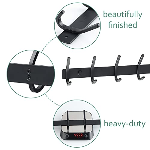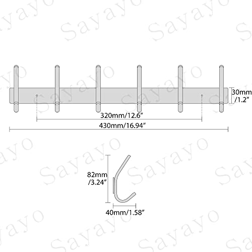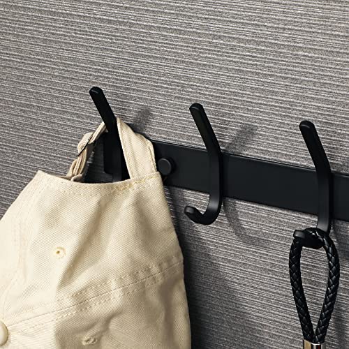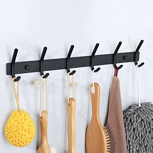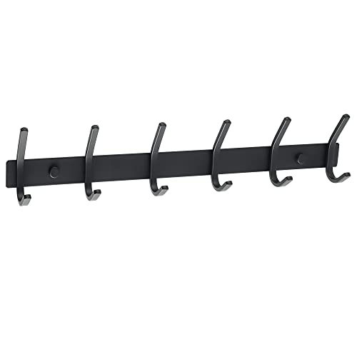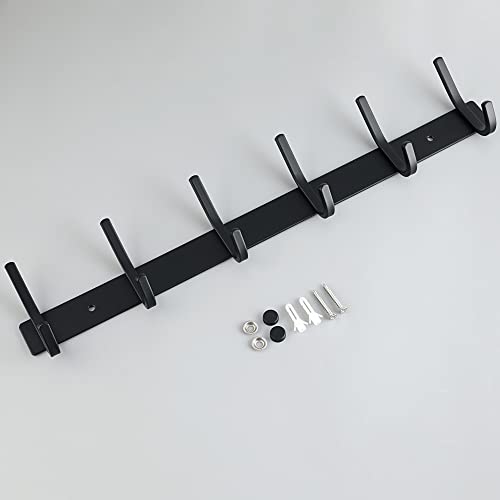 SAYAYO - خطاف بالطو من فولاذ مقاوم للصدأ ذاتي اللصق مع 6 خطافات لتعليق البالطو للمطبخ والحمام وغرفة المعيشة والممر من سايايو EGJF2202B-6، أسود