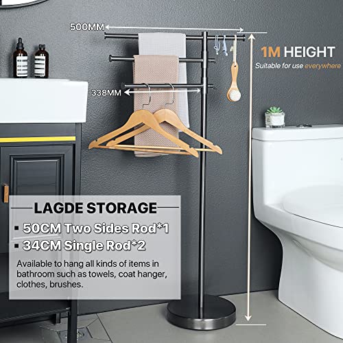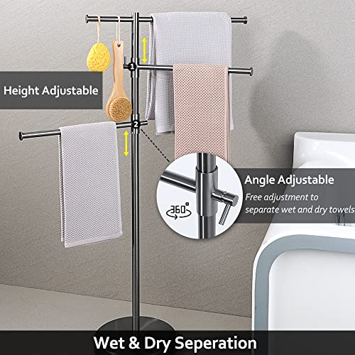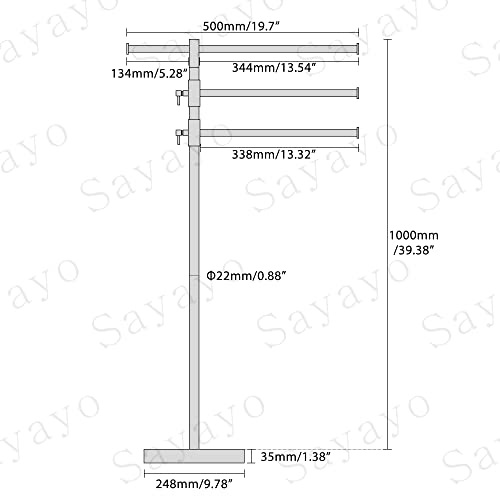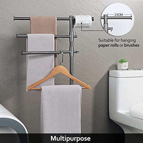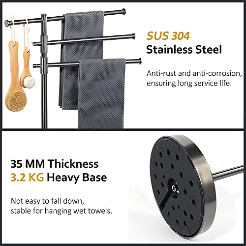 SAYAYO - سايايو حامل مناشف قائم بذاته مع 3 قضبان مناشف قابلة للتعديل، حامل مناشف من الستانلس ستيل SUS304 للتخزين مع قاعدة ثقيلة 3.2 كجم، لمسة نهائية رمادية، EGOY100SP-3-QH