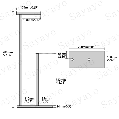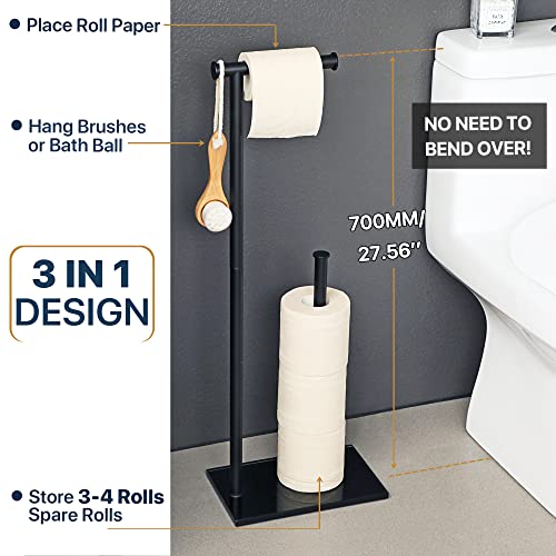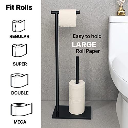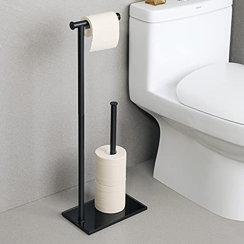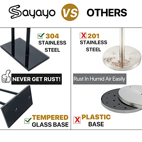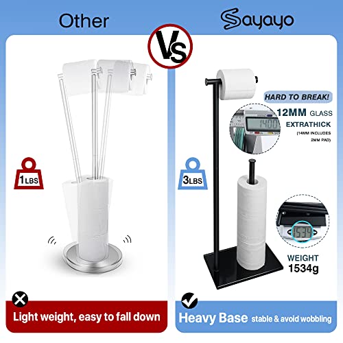 SAYAYO - حامل ورق تواليت اسود قائم بذاته للحمام من سايايو، اعمدة من الستانلس ستيل SUS304 وقاعدة من الزجاج المقوى بسمك 12 ملم، حامل تخزين اضافي لـ 3-4 لفات (ارتفاع 70 سم)