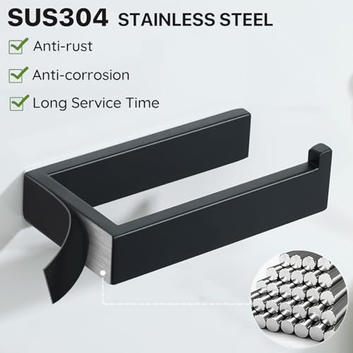 SAYAYO - حامل مناديل تواليت يثبت على الحائط من الفولاذ المقاوم للصدأ SUS304 للمطبخ والحمام بتصميم مربع أسود غير لامع من سايايو، EGKN2211-B