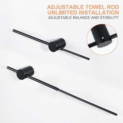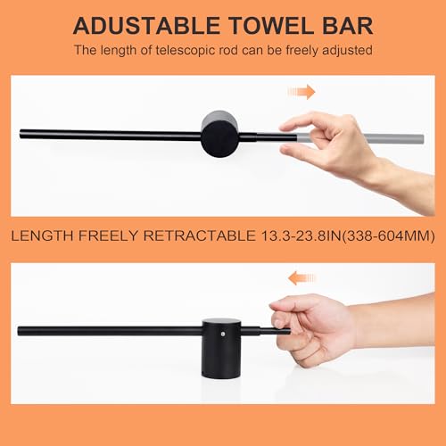 - تصميم قابل للسحب - طول قضيب الفوطة قابل للتعديل، يمكن إطالة جانب واحد من القضيب وتقصيره وفقًا لاحتياجاتك الفعلية. الطول القابل للتعديل هو 338-604 ملم، الطول الكلي لرف الفوط: 604 ملم.