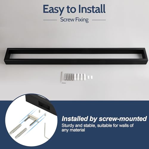 SAYAYO - حامل مناشف يثبت على الحائط بلون أسود من سايايو، حلقة منشفة اليد للحمام والمطبخ SUS304 من الفولاذ المقاوم للصدأ 600 ملم، EGKN2210-600-B