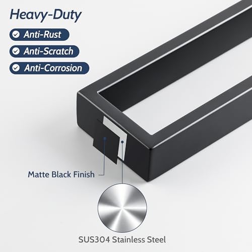 - جودة عالية - فولاذ SUS304، مضاد للصدأ ومضاد للتآكل، مما يضمن الجودة وطول العمر في الحمام. حامل مناشف شديد التحمل، قوي بما يكفي لتعليق منشفة الحمام المبللة.