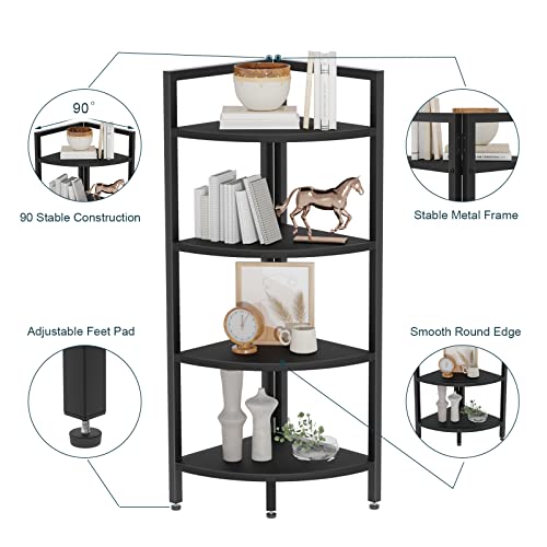 SAYGOER - رف كتب من 4 طبقات قائم بذاته بطول 1.3 متر 51 انش عصري منظم للتخزين عرض صناعي رفوف حامل نباتات لغرفة المعيشة والمنزل والشرفة والمطبخ أسود سايغور