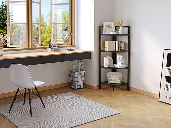 - 【تصميم مثلث حديث】 البساطة الانسيابية تلتقي بالحداثة في خزانة الكتب الأنيقة هذه. مظهرها الأنيق وهيكلها البسيط يجعلها ملائمة عصرية وعملية في أي غرفة، 90 درجة تناسب الزاوية تمامًا.