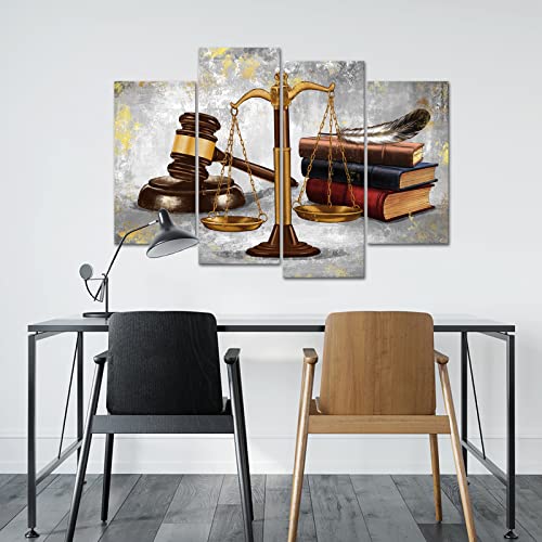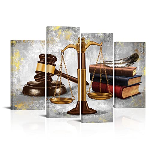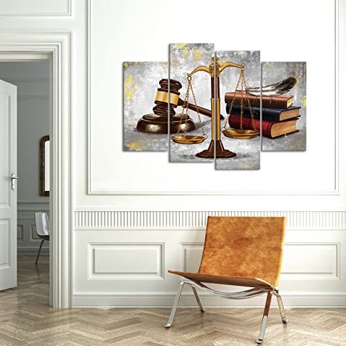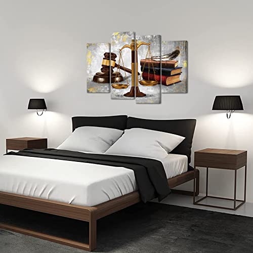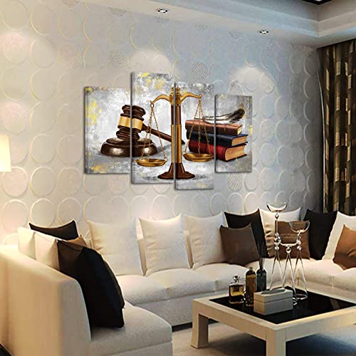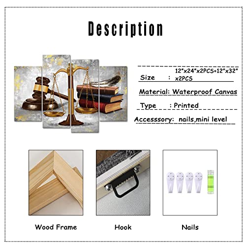 Saypeacher - لوحة فنية جدارية عتيقة لديكور غرفة مكتب المحاماة، لوحة فنية جدارية قماش بتصميم قانوني ميزان عدل ومطرقة عدالة لمكتب لمحاماة، لوحة مطبوعة على القماش من سايبيتشر، مقاس 30×60 سم× قطعتين+ 30×81 سم× قطعتين