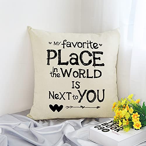 - 【هدايا علاقات المسافات الطويلة】يا له من كيس مخدة رومانسي. منقوش عليها عبارات "My Favorite Place in The World is Next to You." قدمها كهدية لصديقك / صديقتك أو زوجك أو زوجتك أو أصدقائك المقربين للتعبير عن مدى اشتياقك لهم.