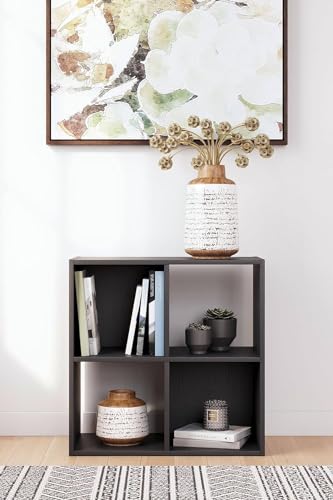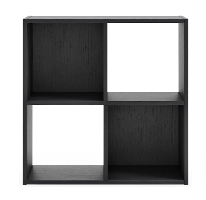 SBF Furniture - وحدة تخزين خشب مكعبة مفتوحة ومغلقة مكونة من 4 أقسام مكعبة الشكل لتنظيم الكتب والأغراض مناسبة لغرفة المعيشة والمكتب والمطبخ وغرفة النوم من اس بي اف فيرنتشر، أسود