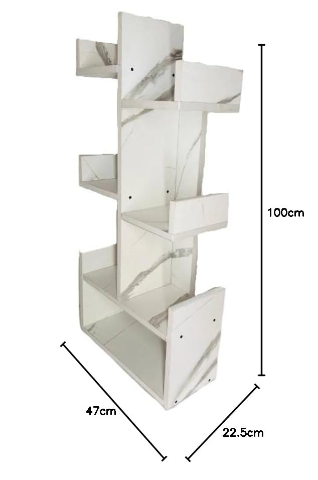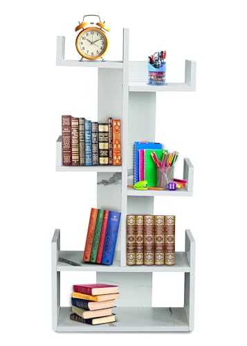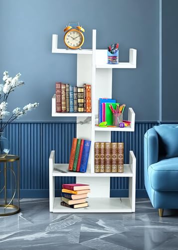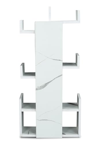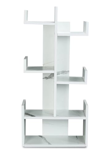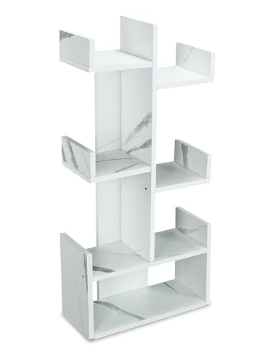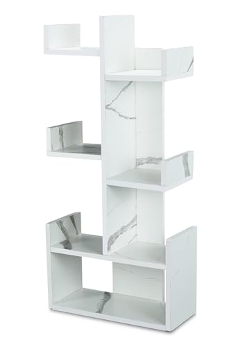 SBF Furniture - رف كتب خشبي هندسي متعدد الأغراض لديكور المنزل من اس بي اف فيرنتشر، رف تخزين ومنظم لغرفة المعيشة والمطبخ (رف كتب مربع، 6 أرفف) (لون أبيض رخامي)