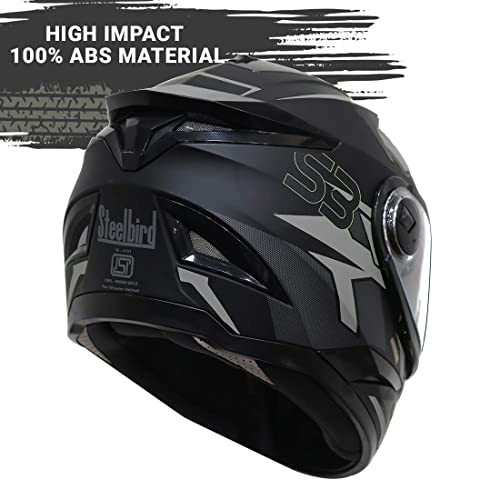 Steelbird - خوذة ترمينيتور لكامل الوجه من اس بي اتش-17 (مقاس متوسط 580 ملم، أسود غير لامع ورمادي مع قناع شفاف)