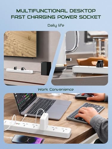 Generic - مشترك كهرباء ذكي 5 مقابس و3 منافذ USB، شحن سريع 38 واط، سلك 2 متر، حماية متكاملة، أبيض، موديل SC5319