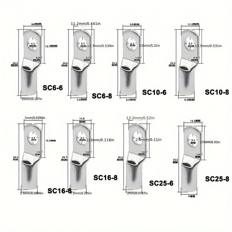 Generic - مجموعة أطراف كابلات نحاسية مطلية بالقصدير SC6–SC25 – 60 قطعة – موصلات كهربائية عالية الجودة لتوصيل الأسلاك والبطاريات والأنظمة الكهربائية – متعددة المقاسات 6مم² إلى 25مم²