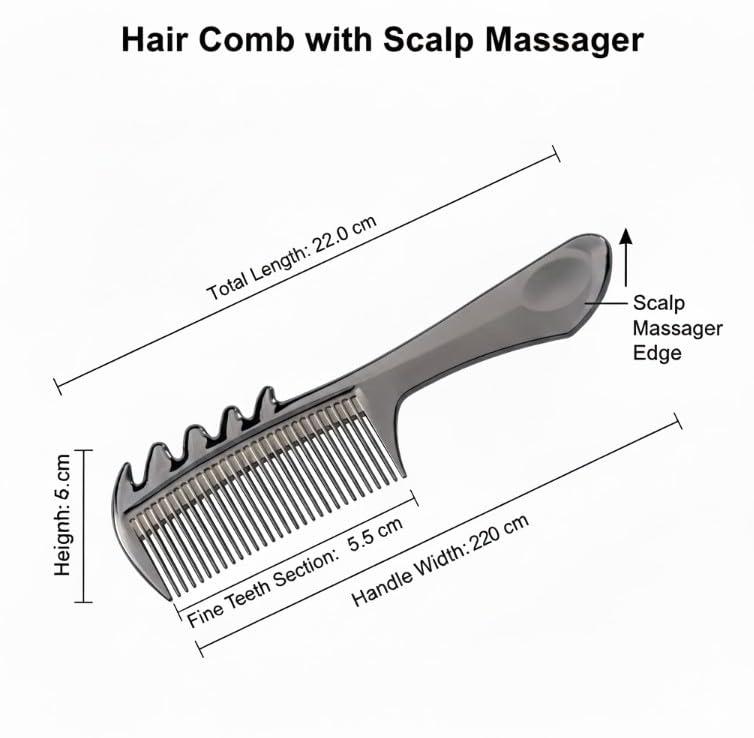 - أسنان 2 في 1: جانب دقيق لتصفيف دقيق، جانب سميك لتصفيف مرتب.
