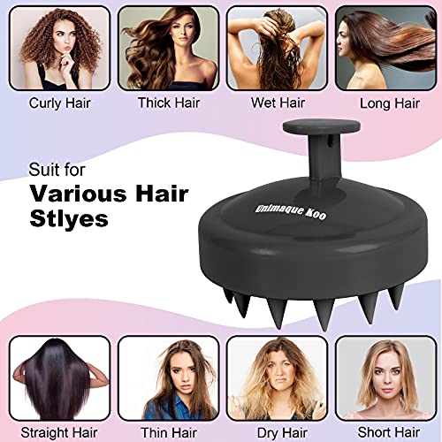 Unimaque Koo - فرشاة شامبو لتنظيف الشعر وتدليك وفرك وتقشير فروة الرأس ولازالة قشرة مناسبة لجميع انواع للرجال والنساء والاطفال والحيوانات الاليفة ايه اسود من يونيماك كو