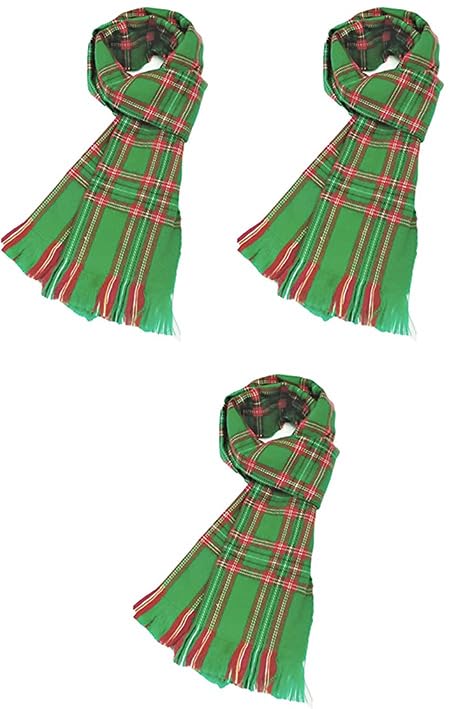 Generic - سكارف للكريسماس كاروهات مع شراشيب، مجموعة من 3 قطع، نمط تارتان اخضر واحمر 180 × 30 سم