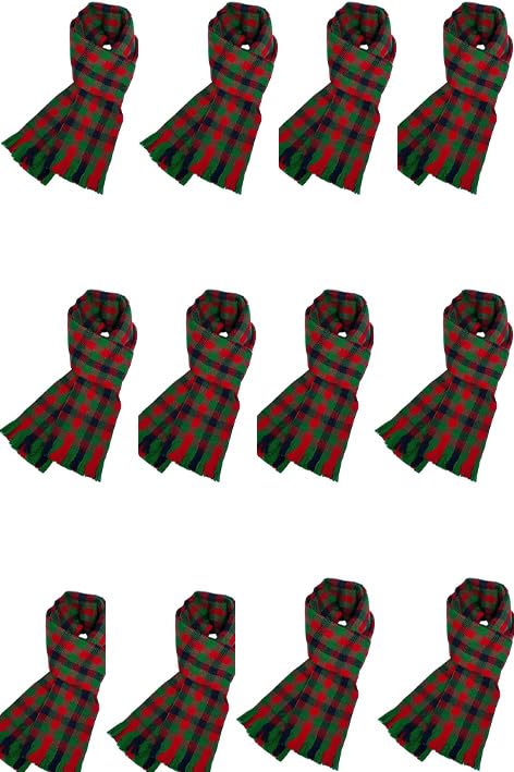 Generic - سكارف للكريسماس كاروهات تارتان، صوف، عبوة من 12 قطعة، لون احمر/كحلي واخضر مقاس 180 × 30