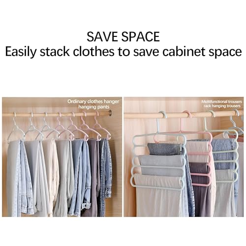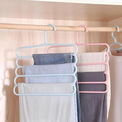 - يتيح لك التصميم المكون من 5 طبقات تعليق 5 أزواج من البنطلونات على الأقل على علاقة واحدة، مما يجعله حلاً موفرًا للمساحة لخزانة ملابسك. فهو يضمن بقاء خزانتك منظمة وسهلة الوصول إليها، مما يسمح لك بالعثور على ما تحتاجه دون أي متاعب.