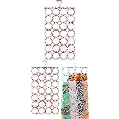Generic - منظم سكارفات + 28 حلقة من راتان منسوج متين وقابل للطي، شماعة شال متعدد الاستخدامات