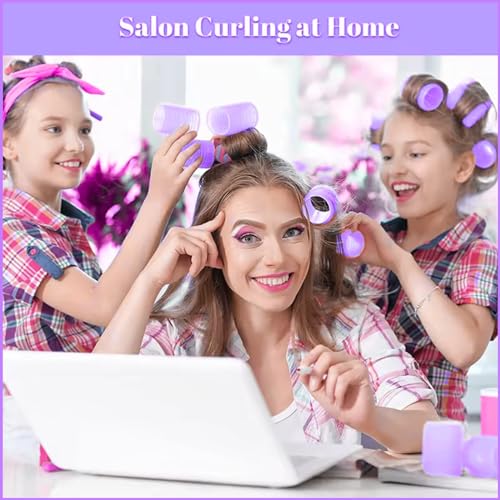 Scarlet Line - سكارليت لاين بكرات تجعيد شعر بشريط فيلكرو احترافية، بكرات بلاستيكية ذاتية الإمساك لتصفيف الشعر للاستخدام في المنزل وصالونات التجميل - 1 انش_6 قطع _ لون ارجواني
