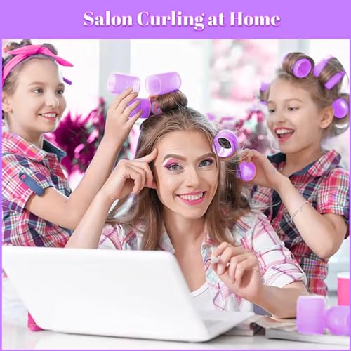 Scarlet Line - بكرات تجعيد شعر بشريط فيلكرو احترافية، بكرات بلاستيكية ذاتية الإمساك لتصفيف الشعر للاستخدام في المنزل وصالونات التجميل - 1.9 انش_6 قطع _ لون ارجواني