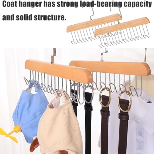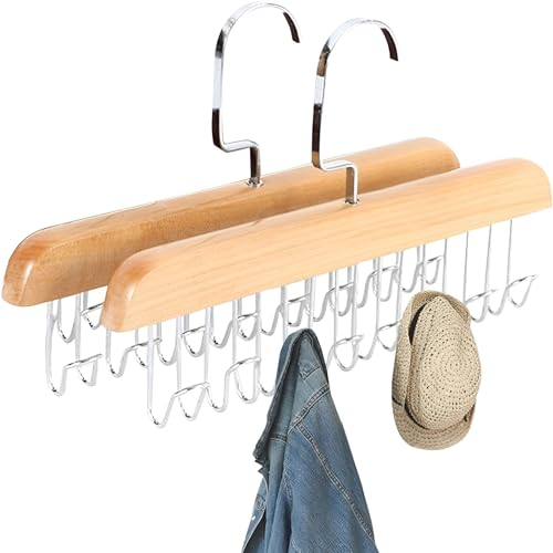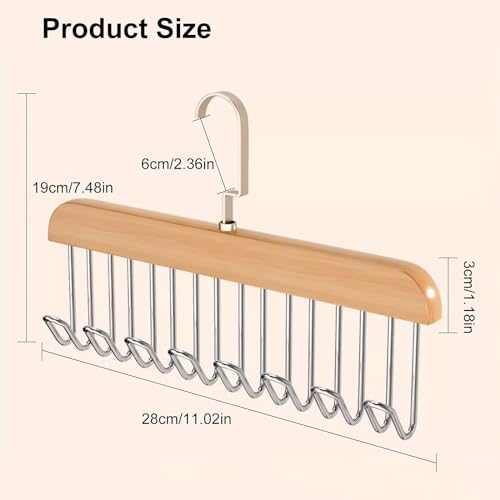 SCDZY - طقم حامل ربطة العنق الدوار من اس سي دي زي واي، قطعتين، حزام 360 درجة، دولاب، حزام خشبي، دولاب بخطافات متعددة، ربطة عنق