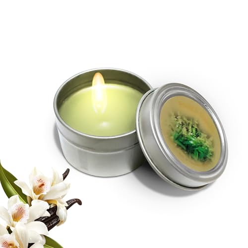 Generic - شمعة معطرة في علبة معدن للاسترخاء العلاجي بالروائح وتخفيف التوتر، شمعة مصنوعة من شمع الصويا الطبيعي مع غطاء للسفر للمنزل والحمام والمنتجع الصحي واليوجا للنساء (رائحة الفانيليا الفرنسية)