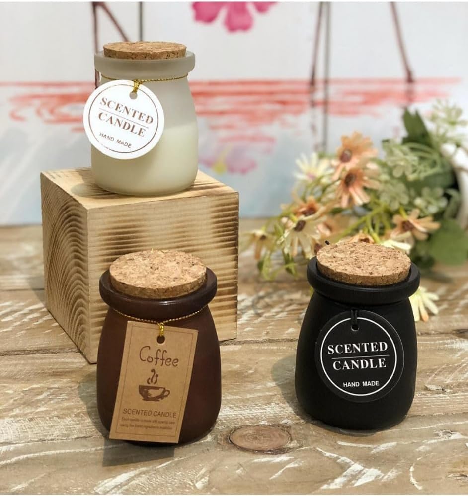 - مواد فاخرة: شموع شمع الصويا المصبوبة يدويًا في برطمانات زجاجية أنيقة مع أغطية من الفلين، مثالية لخلق جو مريح