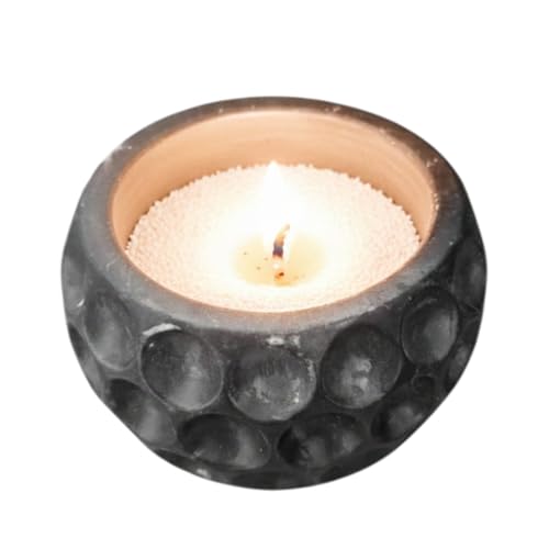 Generic - شمعة رملية معطرة مع حامل فخار تصميم كروي منقوش، ديكور منزلي (ابيض)