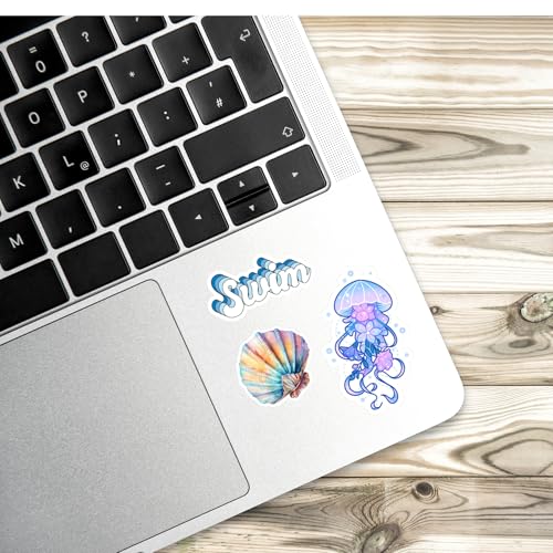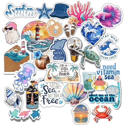 Scentiment - مجموعة ملصقات المحيط والشاطئ من الفينيل مقاومة للماء بتصميم أمواج البحر وسلاحف وأصداف ومرجان ومنارة واقتباسات صيفية مناسبة للاب توب وزجاجة المياه والمذكرات من سينتيمنت، 35 قطعة